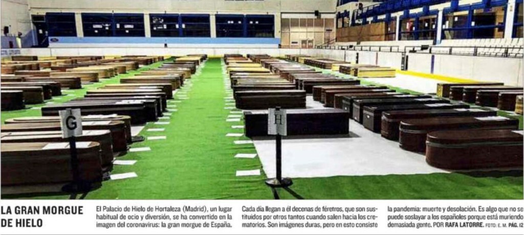 En España, desde donde escribo esta nota, son pocas las regiones donde se ha permitido que los féretros se conserven en los tanatorios, con la esperanza de que la epidemia conceda una tregua y se autoricen las ceremonias de despedida colectivas.