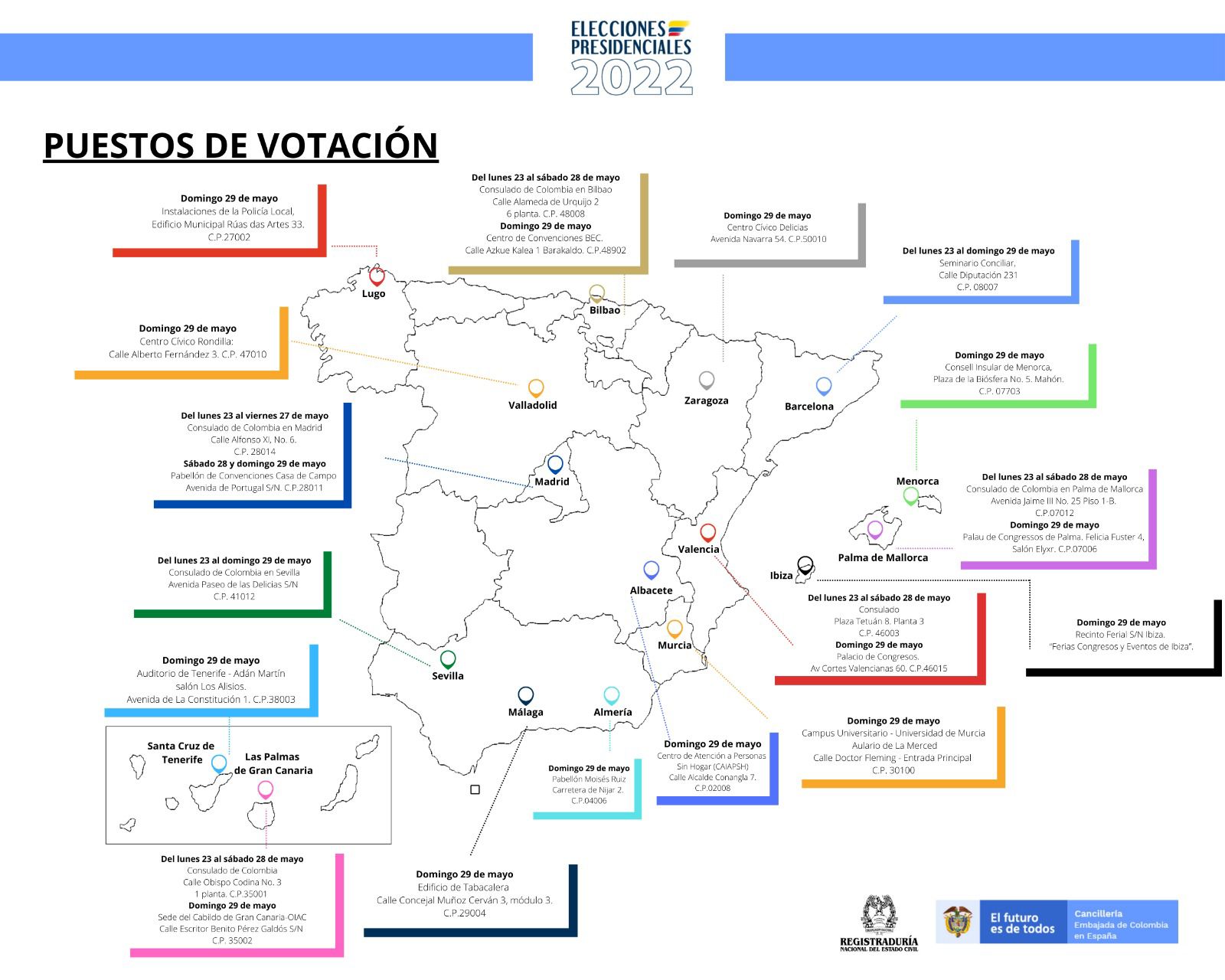 En total son 169.507 los colombianos inscritos que podrán ejercer el derecho al voto desde hoy lunes 23 de mayo, hasta el domingo 29 entre las 08:00 a las 16:00 horas, en 17 ciudades españolas: